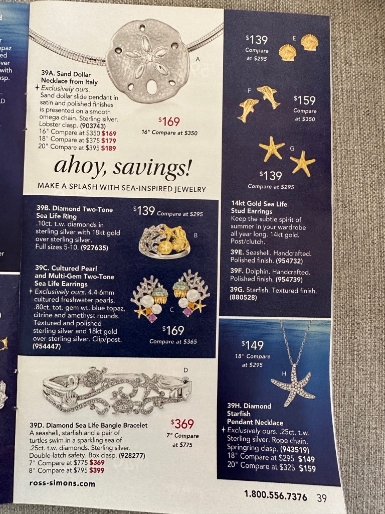 ahoy, savings! make a splash with sea-inspired jewelry — This headline is from a savings book. This nautical-themed page was fun to work on, using words like “ahoy” and “splash” to really make it all come together.